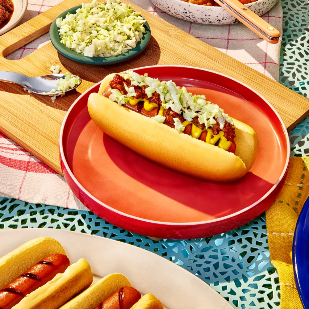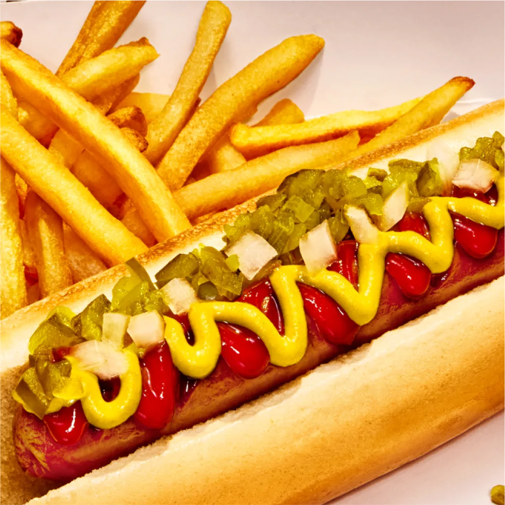 Savory. Beefy. Smoky. Our hot dog tastes so awesomely bad for you, you’d never suspect it has half the saturated fat of the ol’ animal version.² (But more about that in the nutrition section.) You probably just want to know if it has that hot-doggy snap when you bite it. And the answer is…(drumroll)…totally!