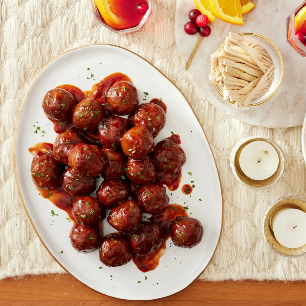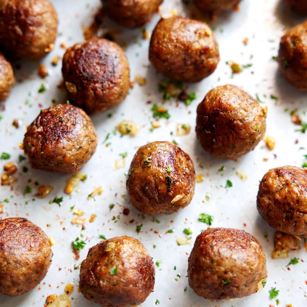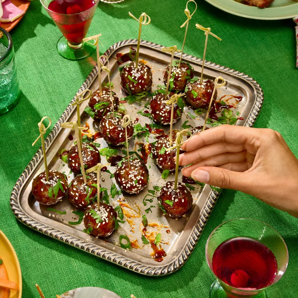 There are two rules in meatballs: 1. You need a blend of juicy ground beef and pork, all perfectly seasoned. 2. A tender, springy texture is non-negotiable. Oh look! Our meatballs nail both rules, only our beef and pork is meat from plants, which adds the extra bonus ingredient of good vibes.