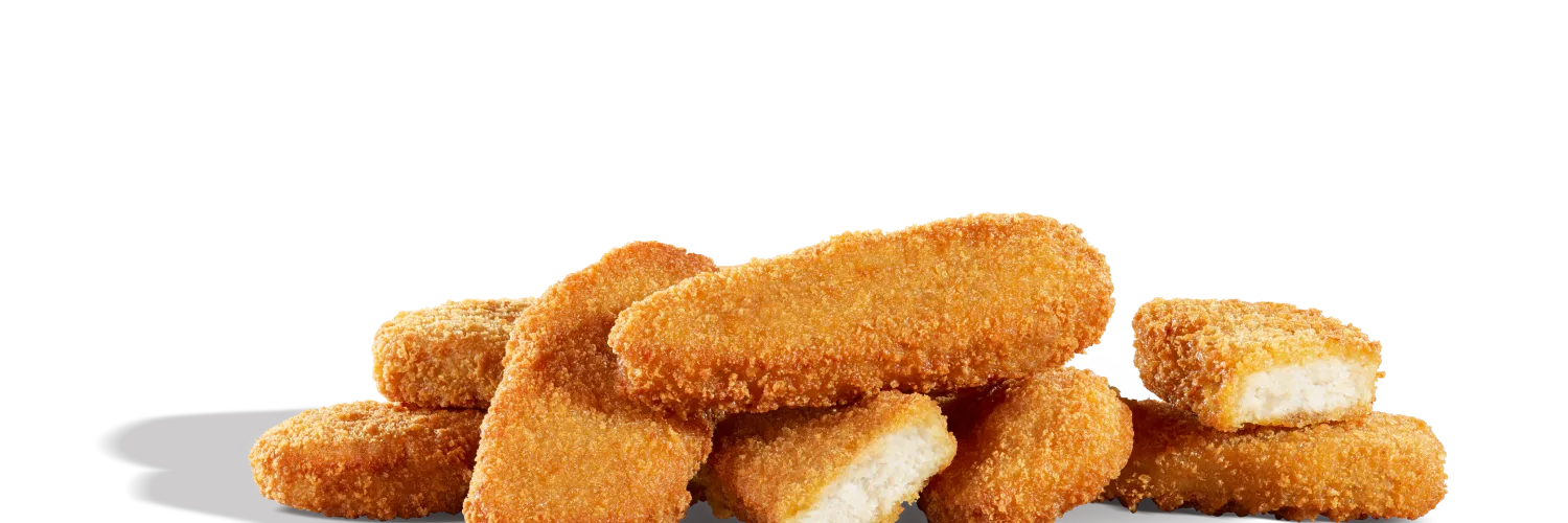 These are chicken tenders, but instead of chicken tenders made from chicken, these fully-cooked, juicy, crispy, meaty chicken tenders are made from plants. Like from soybeans, sunflowers, and coconuts—farm-grown in the warm sun from the soil of the Earth. It just warms our tenders-loving hearts.