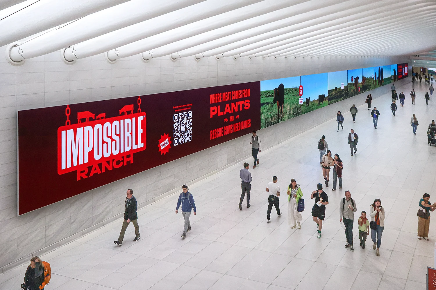On Earth Day, Impossible is taking over the Oculus Transportation Hub in Manhattan to virtually transport busy commuters to the idyllic scenes of Impossible Ranch. This will unlock imagination during an otherwise routine day, inviting commuters to envision a future in which meat is made from plants and cattle can peacefully exist – putting in perspective the impact that food choices can have on animals and the planet.